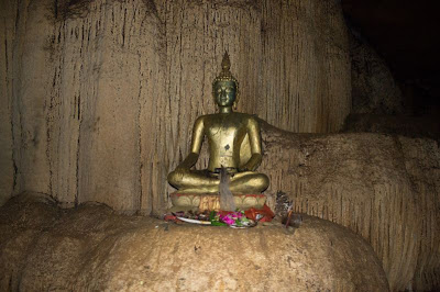 The caves are really bare, no sign, no handrail, no light but they are huge, massive stalagmites, columns and a few Buddhas here and there as well. After a rather long walk in the cave, our host points at a really small opening explaining that we could go on for 2 km on our knees in the water and I think he really expected us to go! We politely declined and decided to go for a well deserved lunch (and a nap, after all we are in Laos, it's a national sport)